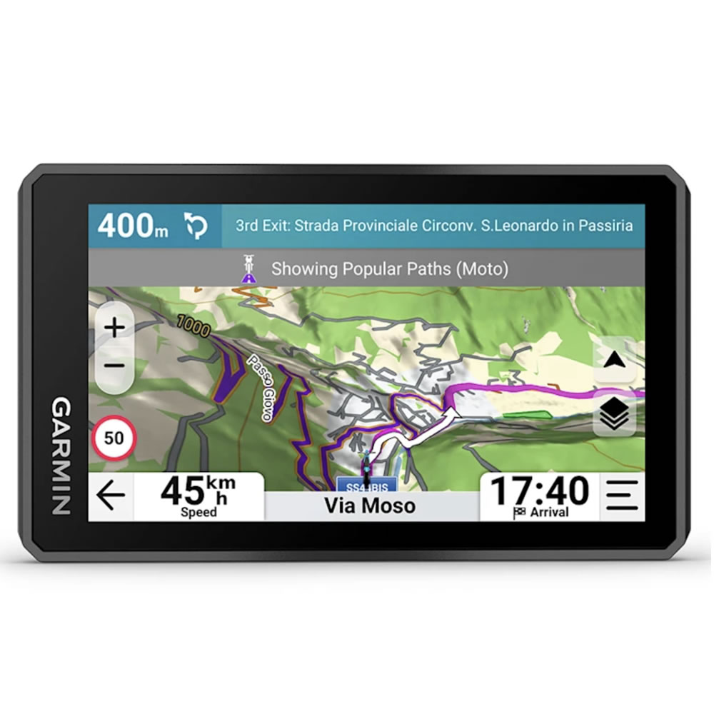The popular moto paths feature shows routes that have been ridden and shared by other Garmin users - a great way to discover new roads you might never have found on your own. You can also use the Great Rides database within the Tread smartphone app to find and bookmark routes, which automatically sync to your device. Difficulty ratings and photos can be added and shared with other riders.